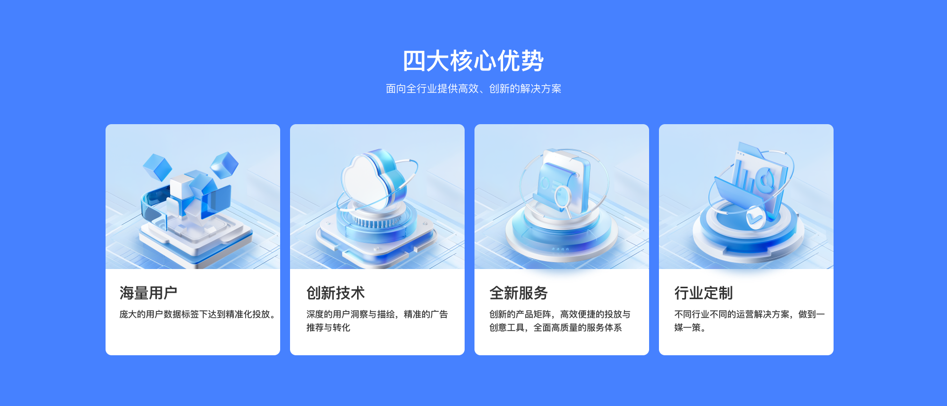 移动流量曝光的黄金入口,支持直达链接吊起,减少过程流失,短时间实现规模化强势曝光,“快、准、广”。